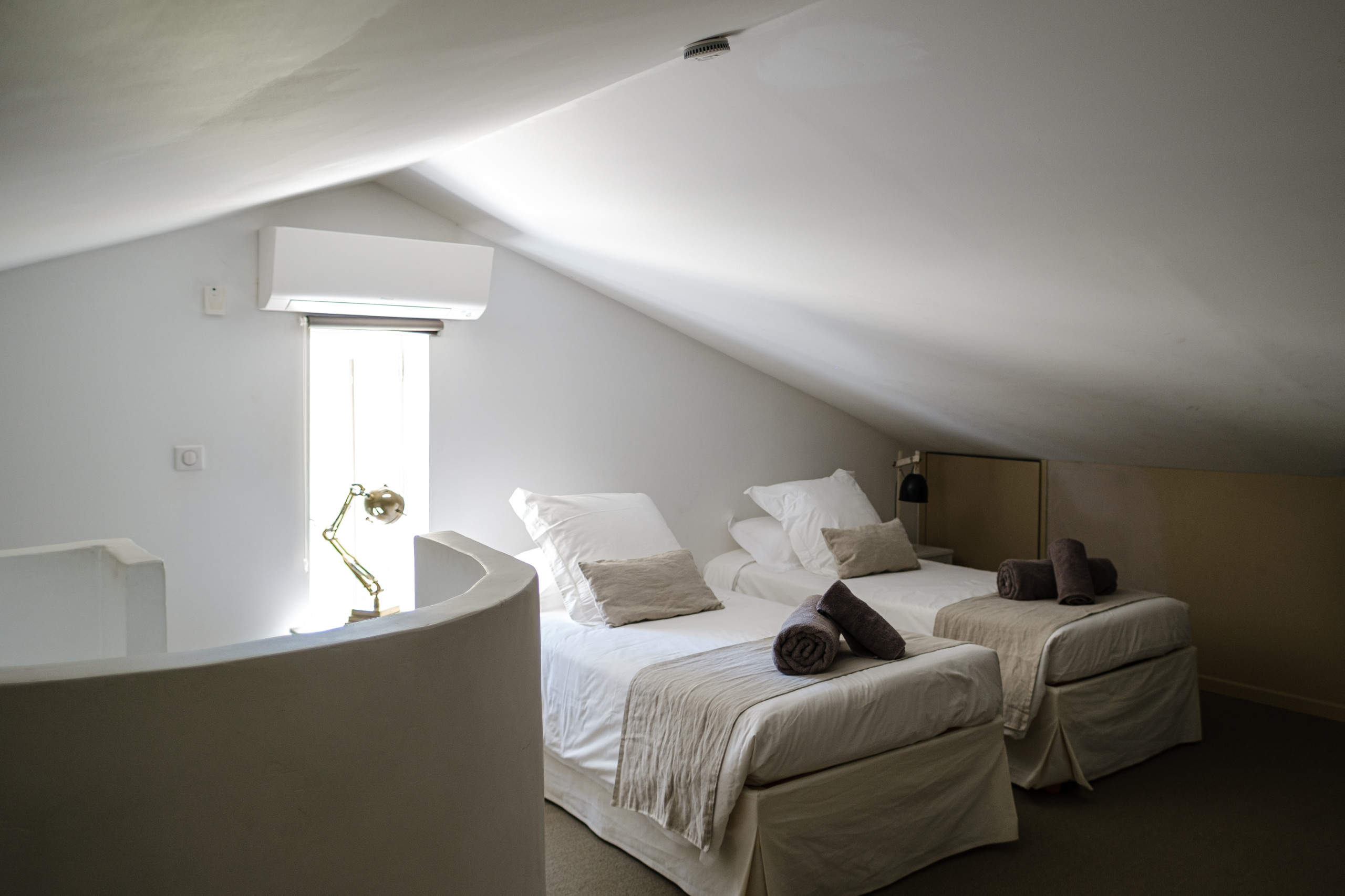 On the ground floor, three spacious en-suite rooms each have their own adjoining bathroom: 2 rooms are equipped with a Super King size bed (200 * 200) with high-end bedding for the most restful nights, and the last room has 2 single beds (100*100)